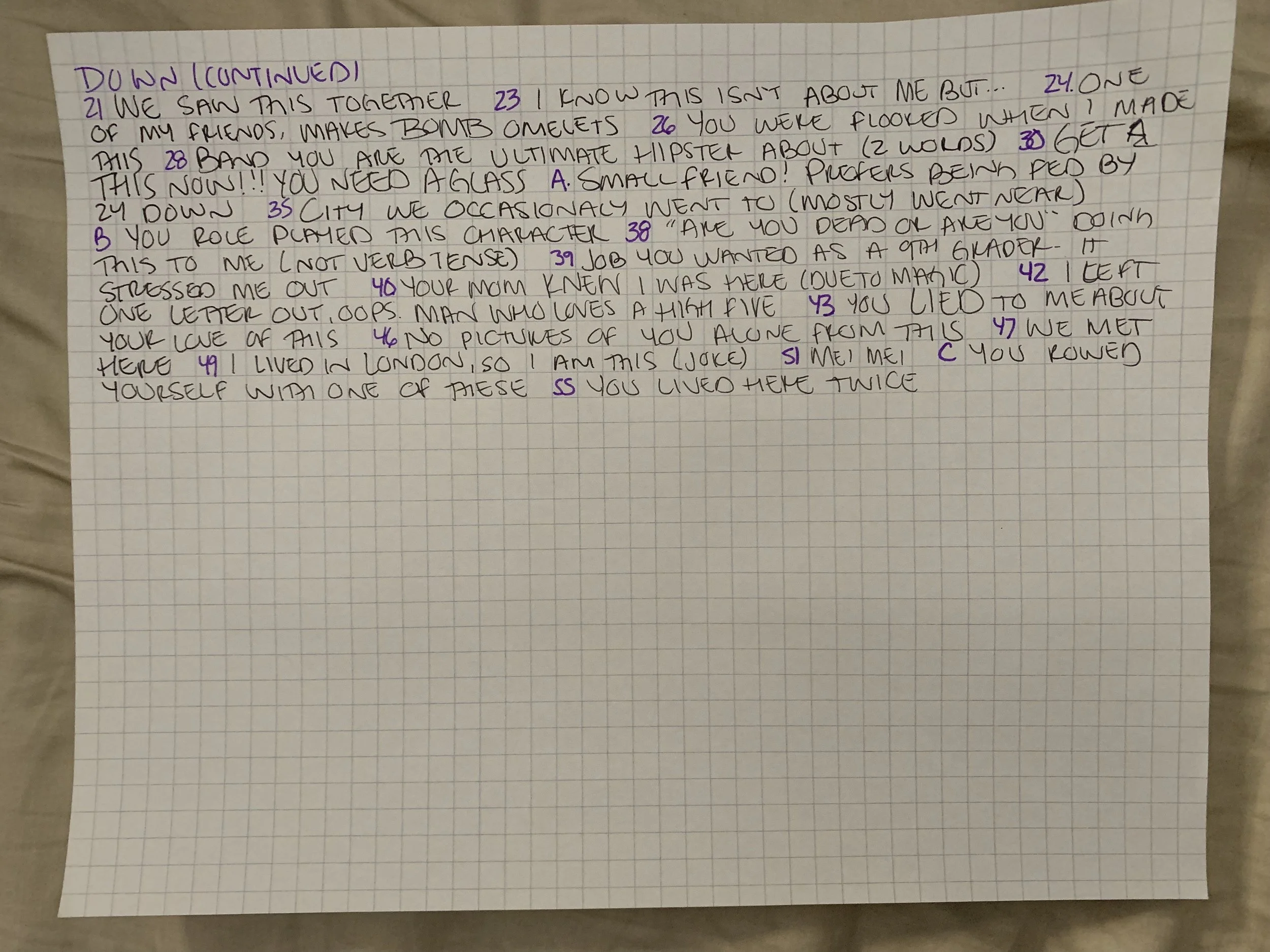 52 We exchanged these while you were in 55 Down